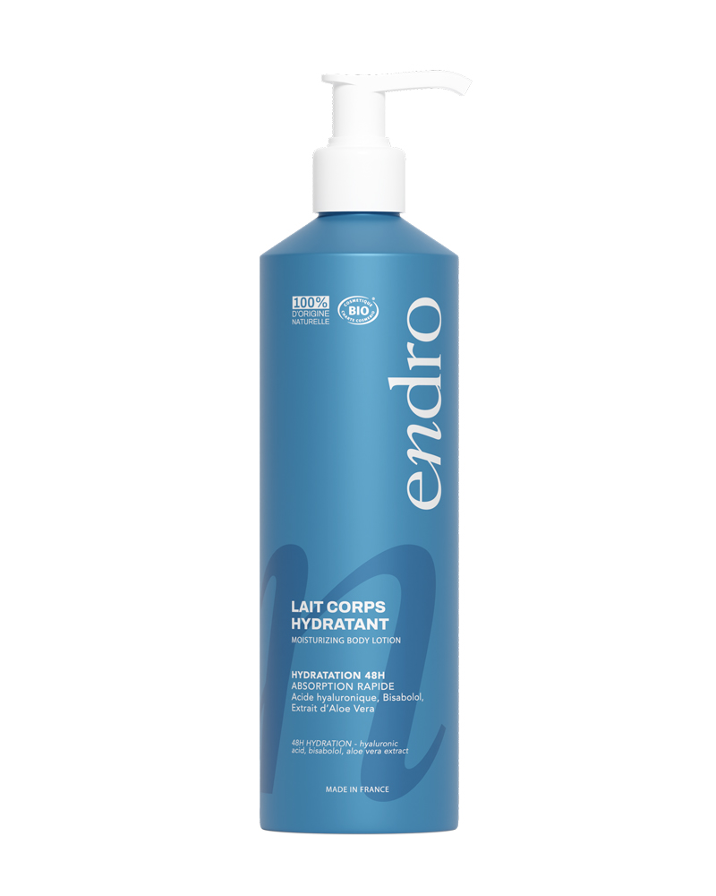 Latte corpo idratante Endro, 100% naturale e certificato bio. Texture fluida, assorbimento rapido, con acido ialuronico, aloe vera e bisabololo. Pelle morbida, idratata e protetta.