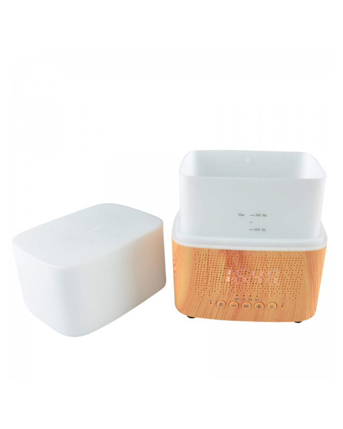 Il pannello frontale incorpora l'illuminazione LED per la visualizzazione dell'ora. La funzione sveglia attiva la diffusione e l'illuminazione per un dolce risveglio con l'aromaterapia. Questa funzione consente anche di attivare la diffusione degli oli essenziali qualche minuto prima del tuo ritorno a casa, e quindi di beneficiare, non appena arrivi, di una atmosfera profumata per un relax immediato.
